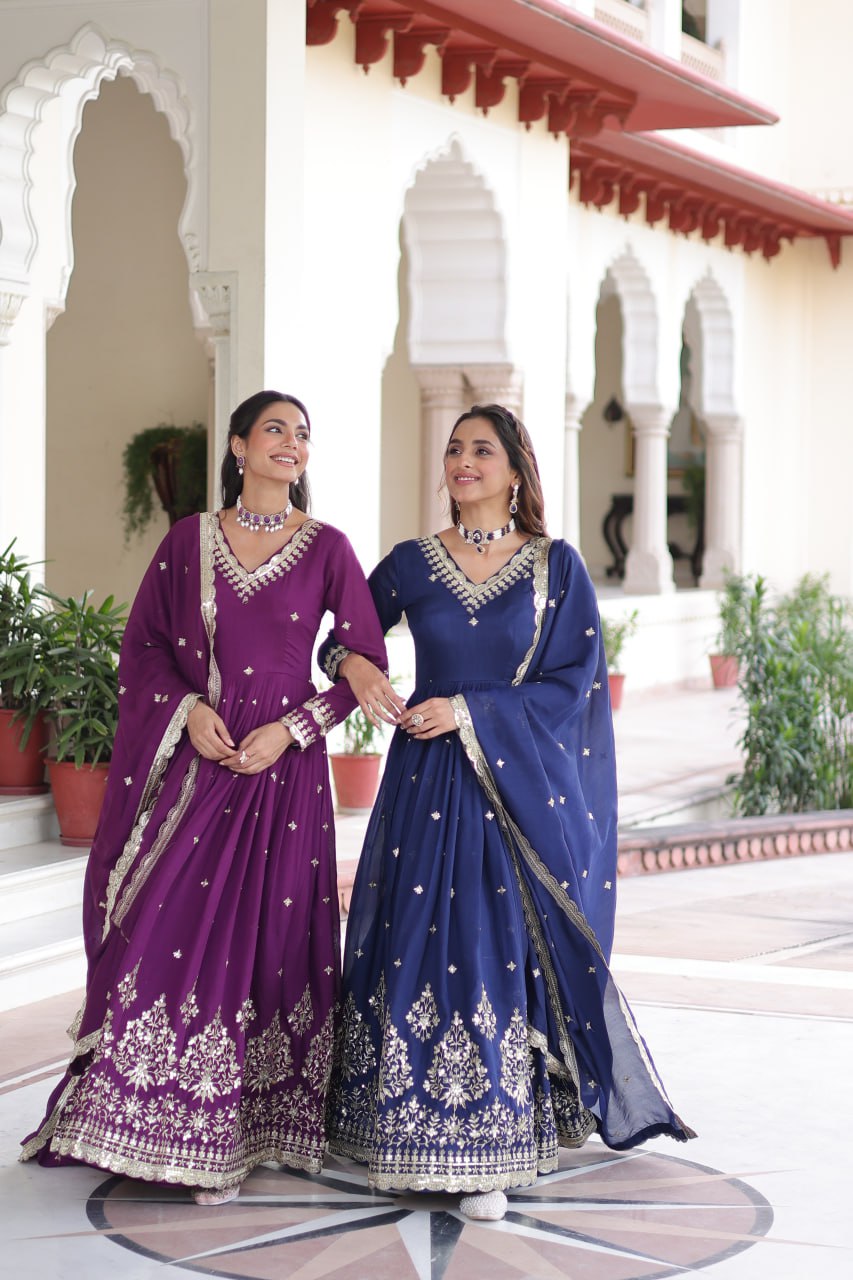 Vichitra Silk with Rich Sequins Embroidered work Gown Vichitra Silk with Rich Sequins Embroidered work Gown
